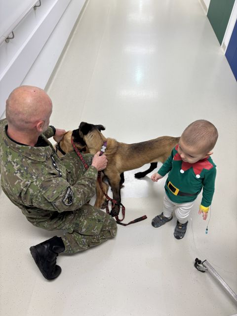 Program návštevy pozostával z dvoch častí. V prvej časti  – generálny duchovný OS SR a OZ SR plk. Viktor Sabo povzbudil deti a ich rodičov piesňou, modlitbou a zamyslením – svedectvom o Božej starostlivosti, láske a záchrane. V druhej časti prišli medzi deti príslušníci Vojenskej polície. Pripravili si pre nich krátku ukážku práce vojenského kynológa, ktorý prezentoval poslušnosť psa na povely a vyhľadávanie výbušnín. Následne im ukázali viaceré zbrane a prvky ich výstroje. Zároveň mali so sebou 2 šteňatá, ktoré sa pripravujú a trénujú na výcvik a boli vhodným prostriedkom pre potešenie detí, ale aj rodičov a personálu kliniky.